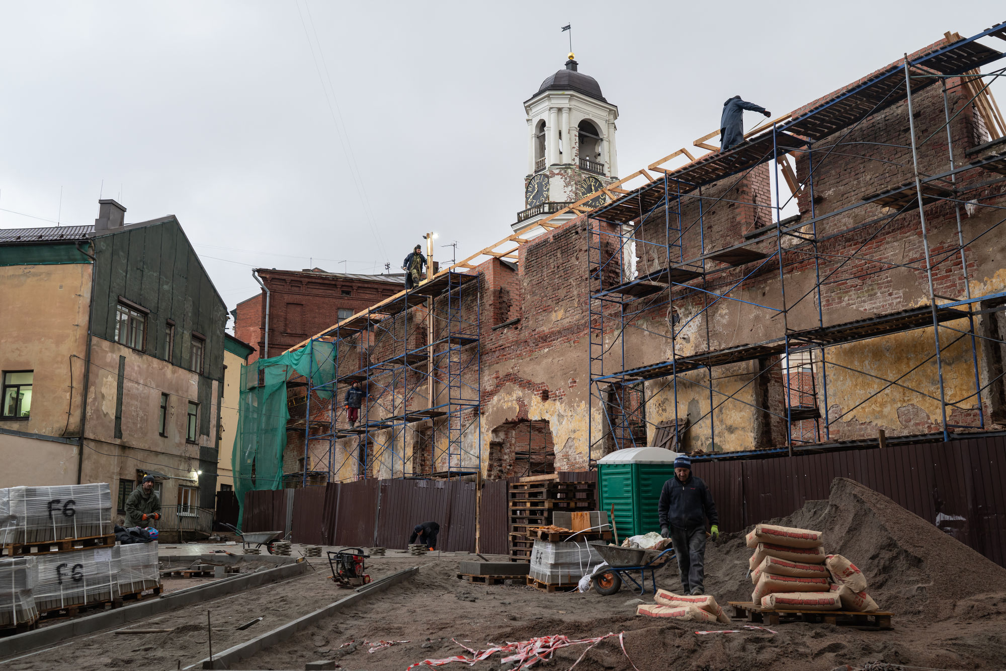 Реставрация выборгской архитектуры идет в основном за государственный счет. С 2015 года, когда началось восстановление городского центра, он точно стал фотогеничнее. Подрядчики успели подновить фасады и части средневековых построек, и нескольких зданий в стиле модерн. К работам у местных жителей и петербургских градозащитников немало претензий. За фантазийность активисты ругали реконструкцию Монрепо, на некоторых объектах — в том числе башне Олафа и модерновом «дворце Пиетинена» — работы пришлось переделывать по нескольку раз. А порой рабочие просто уничтожают исторические детали, которые не включены в проект и не кажутся на первый взгляд ценными. Так было, например, с росписями в доме Портана