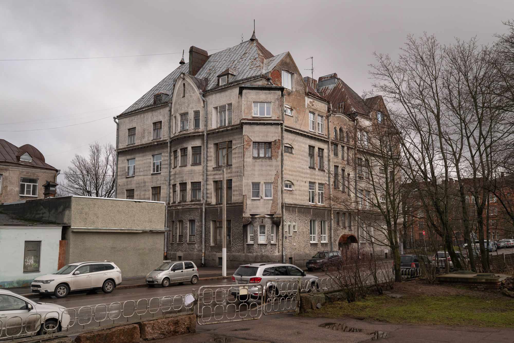 • Еще одну работу Шульмана все того же 1904 года отыщите на Вокзальной улице, 7. Этот дом с гранитным фасадом принадлежал финской фирме «Хякли, Лаллукка и Ко». Кстати, именно ее хозяин Юхо Лаллукка пожертвовал деньги на постройку библиотеки Аалто. Этот дом впечатляет разнообразием барельефом от скульптора Эмиля Халонена и своей ухоженностью.