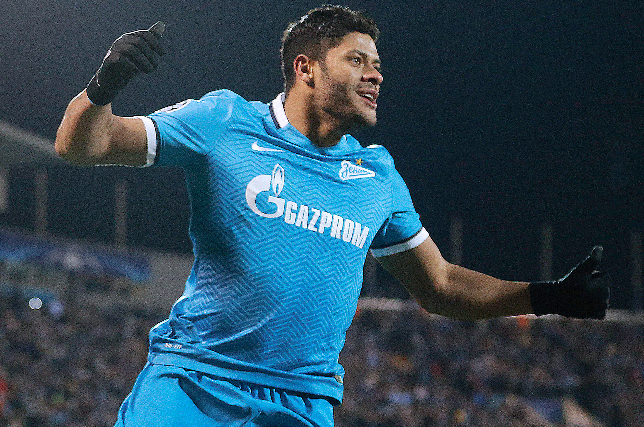 Халк радуется забитому голу в матче против французского «Лиона». Фото: Александр Демьянчук / ТАСС