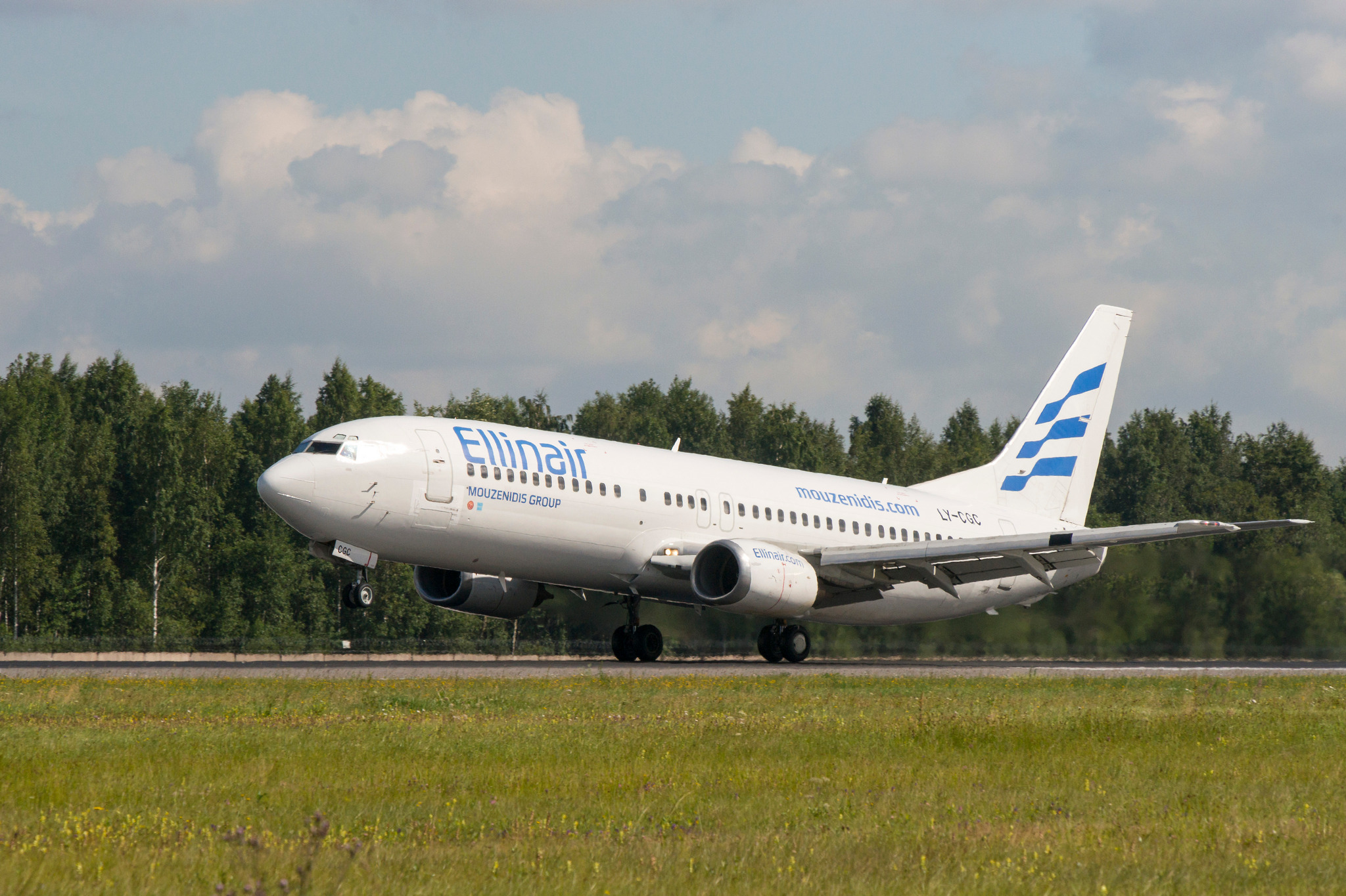 Самолет авиакомпании Elinair в аэропорту Пулково. Фото: Алексей Смышляев / ТАСС