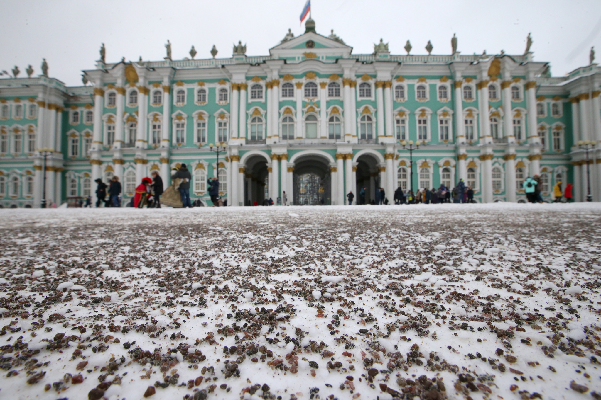 Дворцовая площадь после обработки гранитной крошкой. Фото: Петр Ковалев / ТАСС