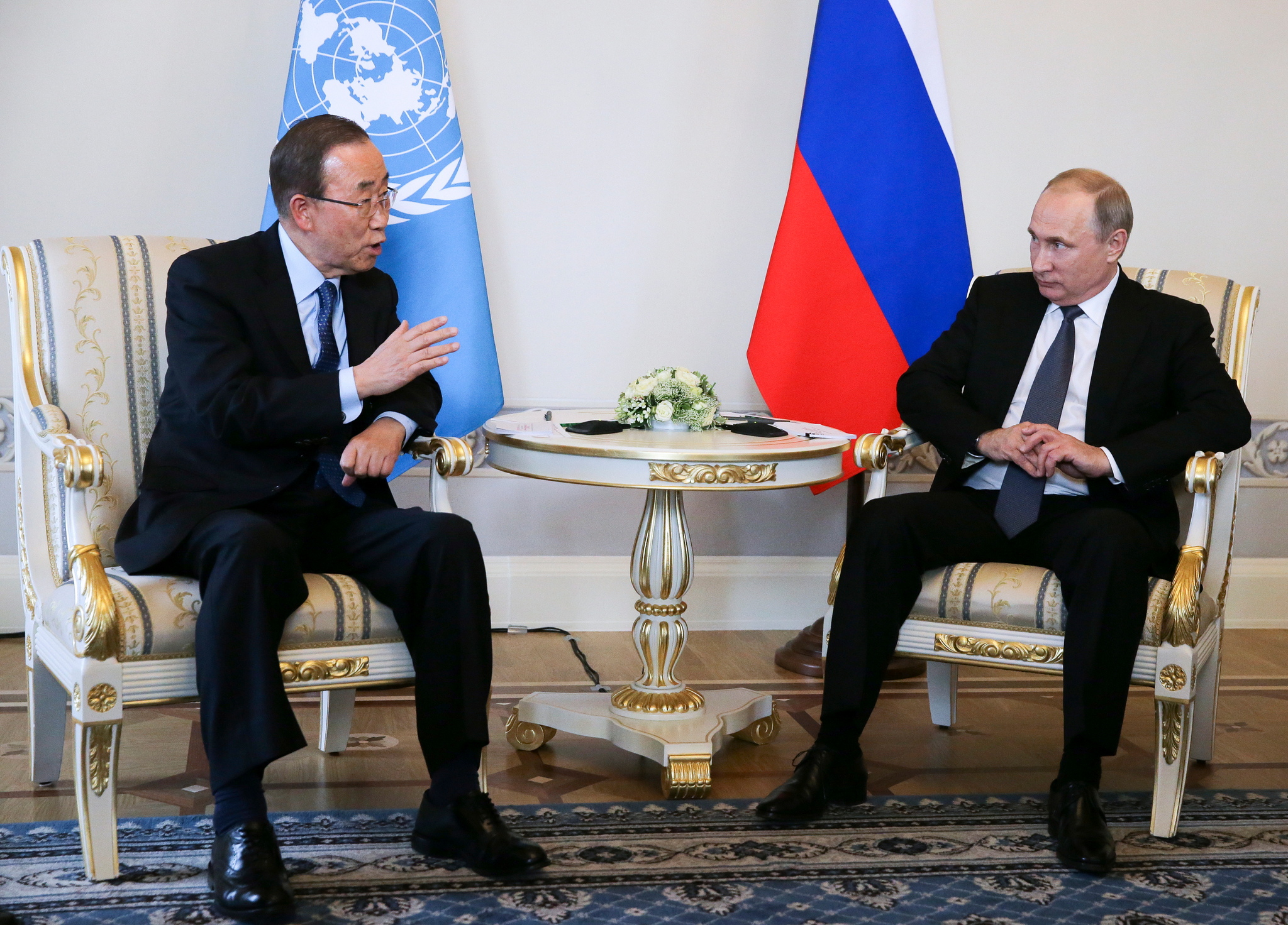 Генеральный секретарь ООН Пан Ги Мун на встрече с Владимиром Путиным. Фото: Михаил Метцель / ТАСС