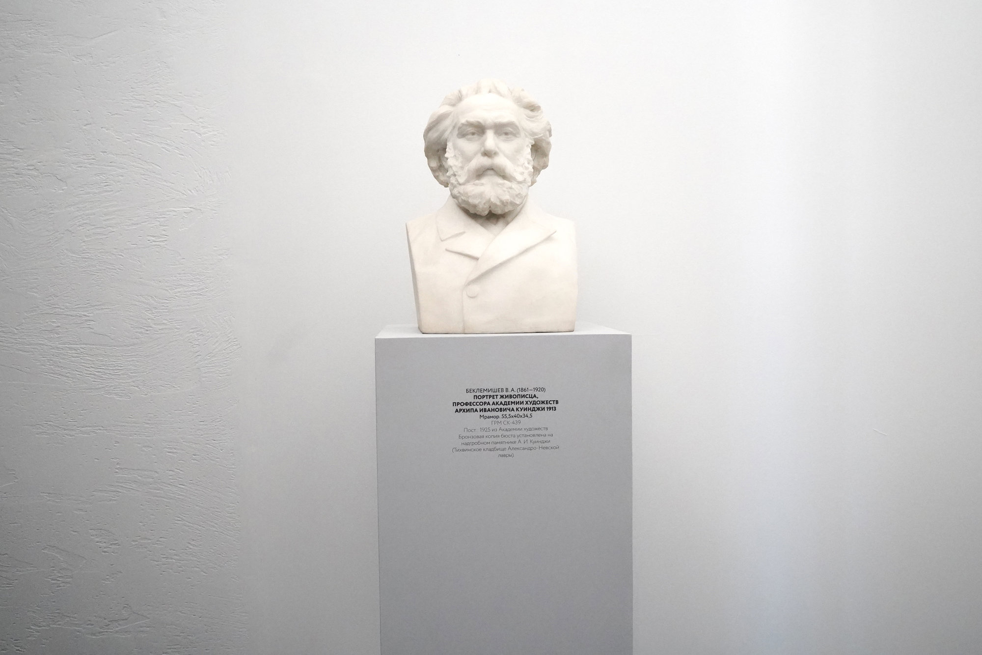 На первом этаже корпуса Бенуа выставили более 150 работ художника. Большую часть произведений взяли из фондов Русского музея: тем более, что именно эта институция обладает самой крупной в мире коллекцией Куинджи. «Представьте, 450 произведений в наших фондах, из них 203 — это его гениальная живопись. Конечно, это феноменальная коллекция, которая позволяет сделать поистине именную выставку», — отметила директор музея Алла Манилова.