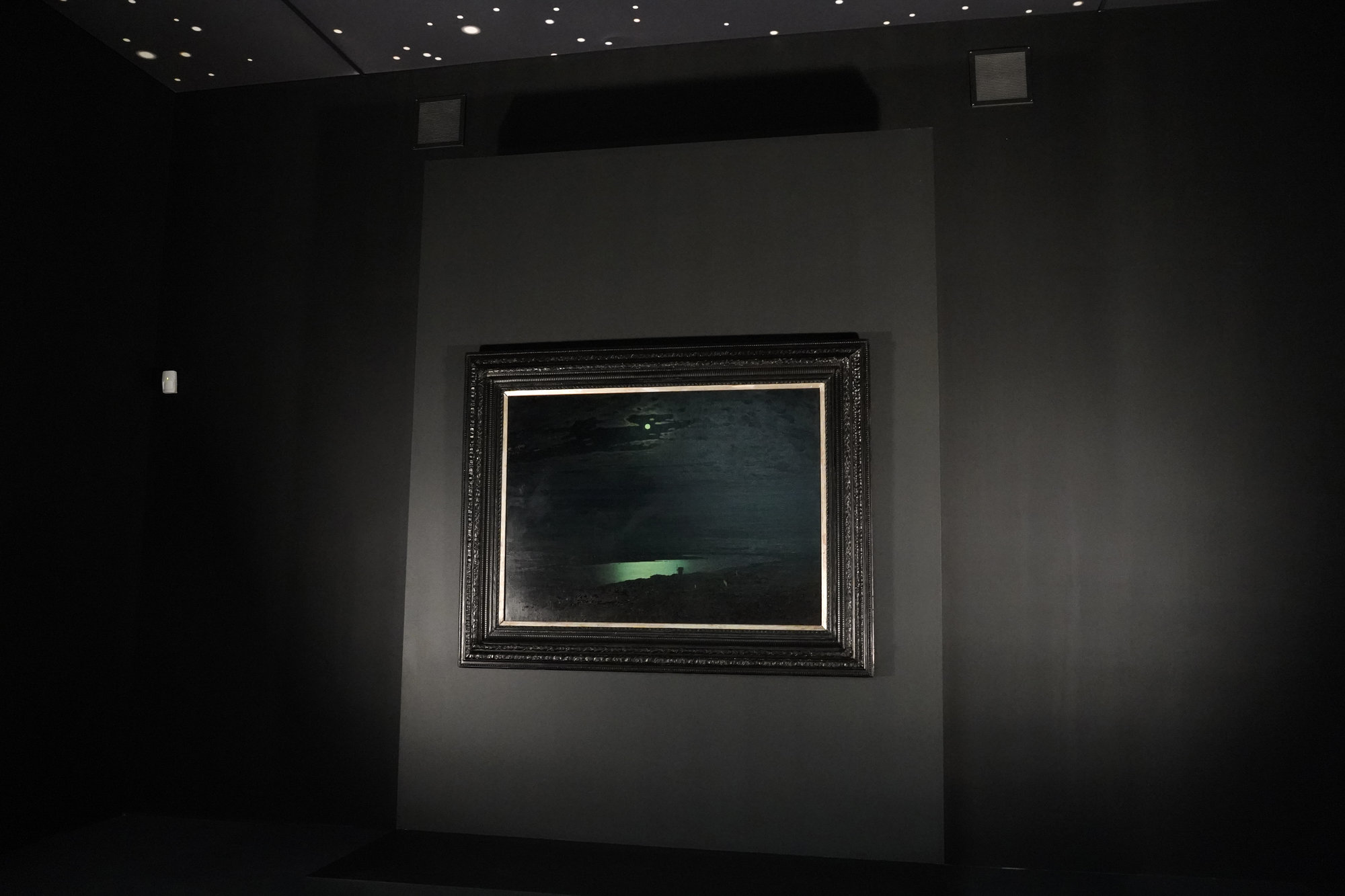 Венчает экспозицию отдельный затемненный зал, посвященный шедевру «Лунная ночь на Днепре» 1880 года. Именно ее Куинджи выставил на первой своей моновыставке — и поразил петербургскую публику. «Захватывает дух, не можешь оторваться от ослепляющей волшебной картины, душа тоскует», — описывал свои впечатления от холста великий князь Константин Константинович Романов (именно он купил у Куинджи это полотно).