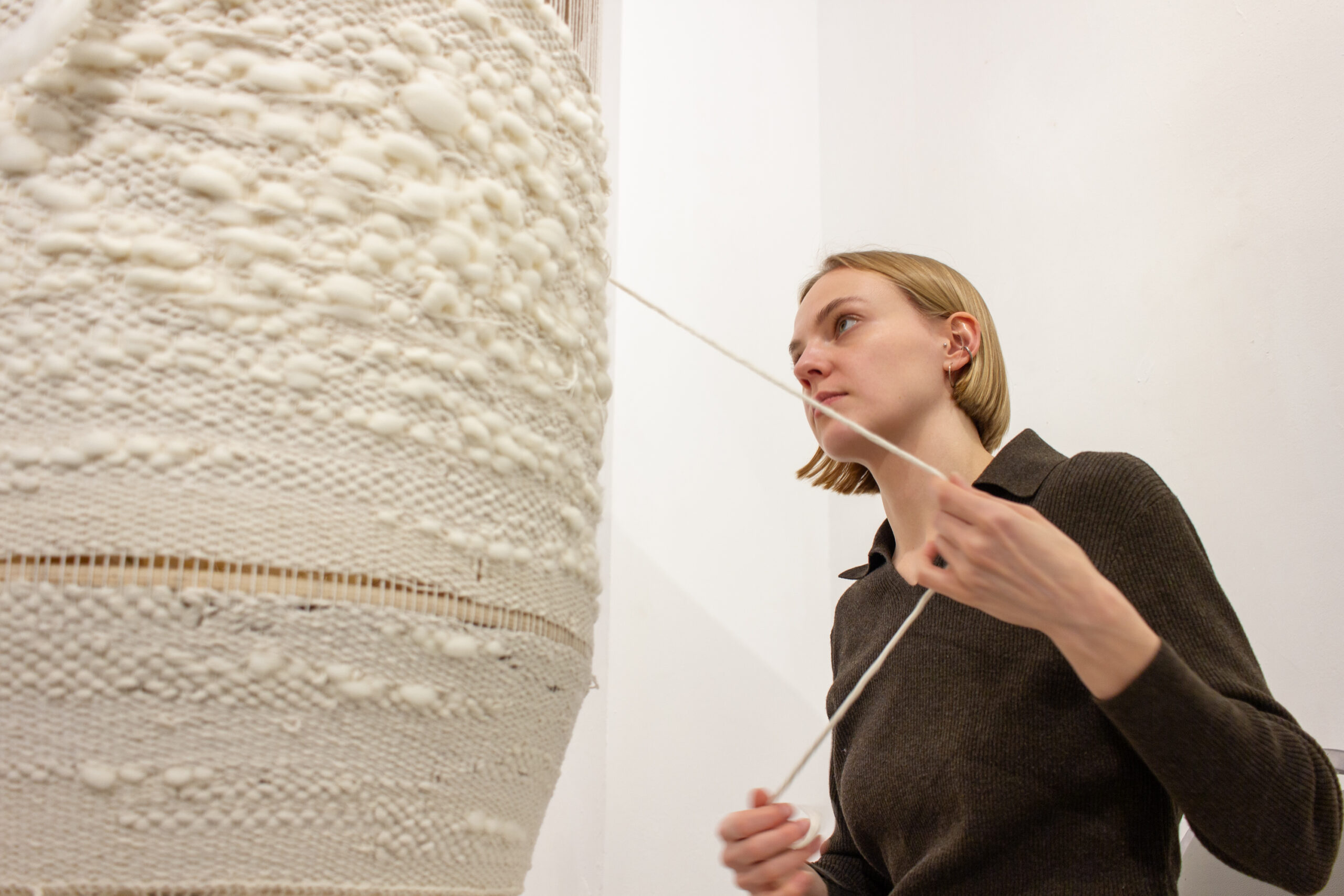Наталья Семенова — современная художница, работающая с текстилем и ткачеством. В своих проектах она создает объекты и инсталляции в смешанных техниках, обращаясь к темам памяти, трансформации и ожидания перемен. В рамках резиденции она разработала и представила работу Moth That Never Comes — масштабную текстильную инсталляцию, отсылающую к форме кокона, увеличенного до человеческого размера.